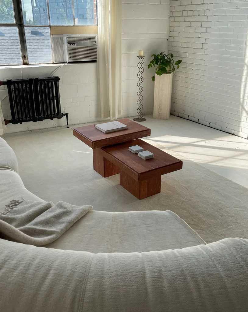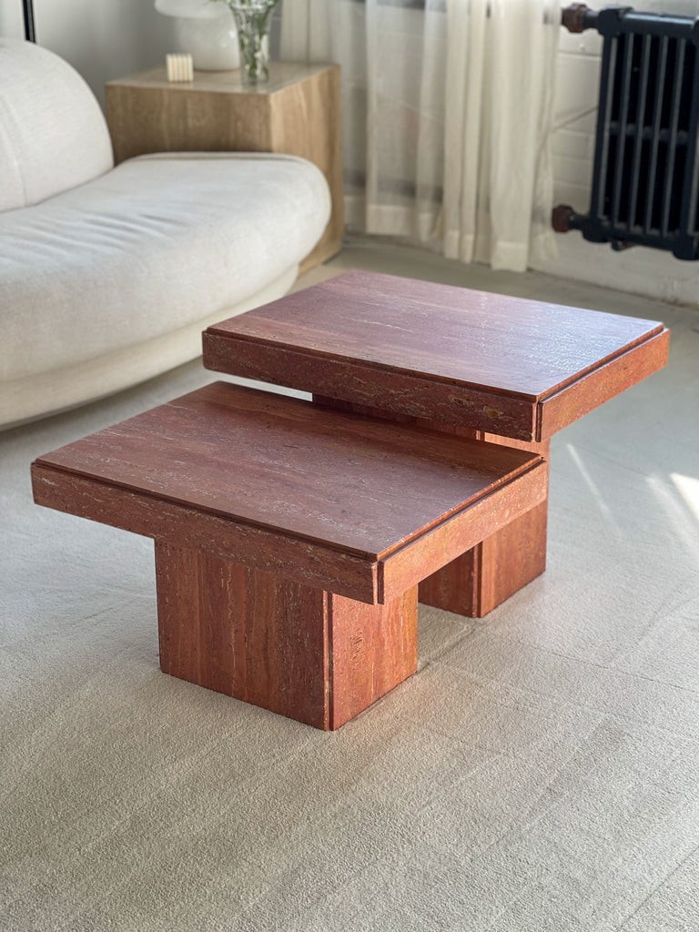 A small yet divine coffee table for any city space. Oftentimes our smaller styles come in a polished finish, however this was given a fresh new honed (also known as matte) finish. This table uses a light travertine variation which is neutral and muted, pairing well with any colour family. Introducing a natural stone to your home, not only elevates your living space, but holds lifetime value. Stone has been desirable for centuries.