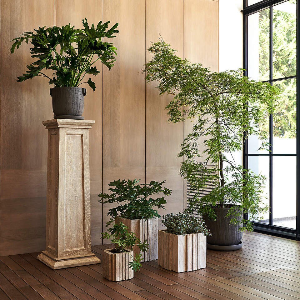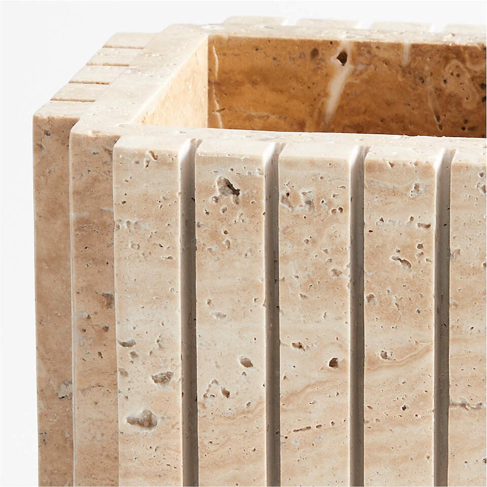 Canali means "channels" in Italian, hence the grooved structure of these travertine planters designed by Athena Calderone. The clean lines and square profiles juxtaposed with the organic texture and coloring of the stone gives the planters fascinating contradiction. Use the planters as cachepots to showcase prized specimens. Athena especially loves the Canali collection's versatilityyou can flip the planters upside-down to use as stylish plinths or side tables.